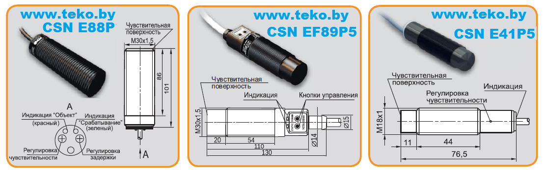 Датчики CSN EF89P5, CSN GF89P5. Датчики с релейным выходом. Являются полными аналогами датчи-